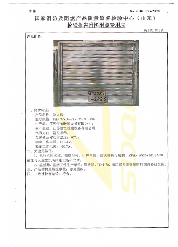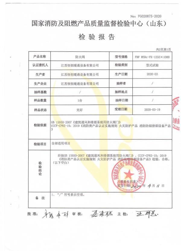 防火閥認證證書1250X1000